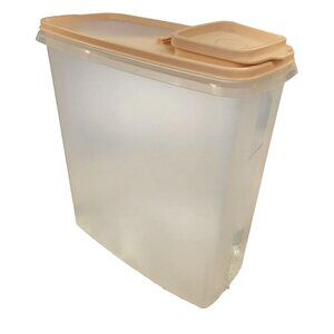Keep your cereal fresh with the Vintage Tupperware Cereal Keeper 13 Cup Container. This clear, cream container features a practical Pour & Store design, and is made in the USA.