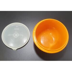 Add a vibrant touch to your kitchen with this small vintage Tupperware mixing bowl! The solid orange color and round shape make it a perfect addition for any Tupperware collector or kitchen enthusiast. The bowl has a diameter of 6.5 inches and a height of 4.5 inches, making it great for mixing ingredients or storing food. The bowl has a 4 cup capacity.
