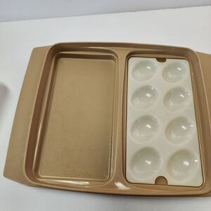 Vintage Tupperware Deviled Egg Holder in Almond/Tan Color