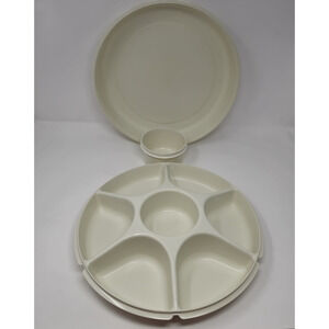 Vintage Tupperware Divided Veggie Relish Chip Fruit Serving Tray With Lid