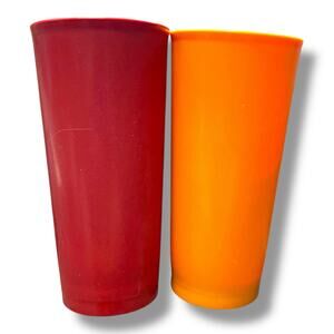 Vintage Tupperware Harvest Tumblers Bowls Cereal Salad Set of 4 1348 155 USA Bowls 6.25"D, Tumblers 6.5"H; Color is Maize yellow (goldish) & Rust Red- perfect for Fall!!