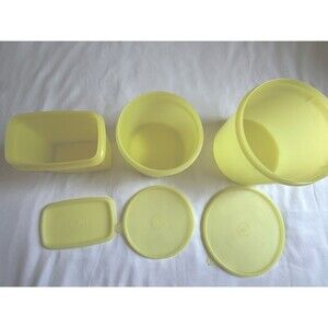 Vintage Tupperware Lot of 3 yellow storage canisters 2 round/nesting 1 rectangle