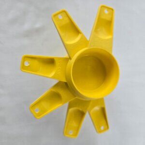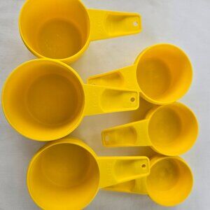 Vintage used Tupperware Nesting Yellow Measuring Cup set of 6 Round Classic which has some age, please view photos for detail and condition. All photos taken in natural light.