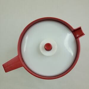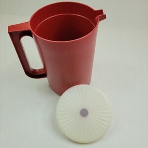 Vintage Tupperware Pitcher 1676-3 Red Orange Short Pitcher 2 Qt Push Button Seal