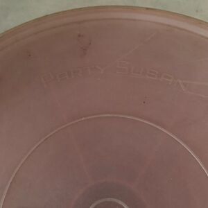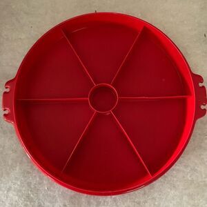 Vintage Tupperware Red Party Susan 405-9 With 224-5 Lid. Good condition, lid has some marks and scuffs. No handle. 12.5”