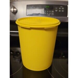 Vintage Tupperware Servalier Canister Style 807-8 Starburst Yellow with Lid