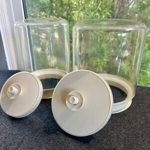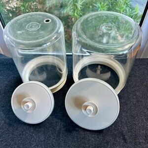 Vintage Tupperware Servalier Clear Canisters with Beige Lids – Set of 2