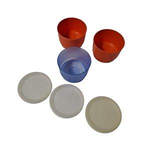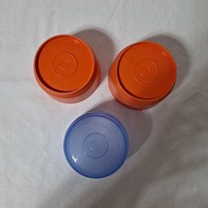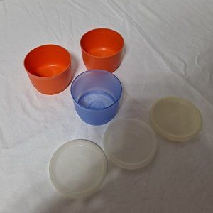 Vintage Tupperware Snack Cups 1229 Orange Clear Blue Lids Lot x 3 Small Bowl