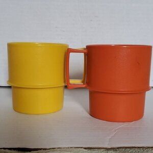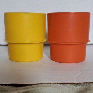 Vintage Tupperware Stacking Coffee Cups Mugs Lids Coasters 8 oz Yellow Orange
