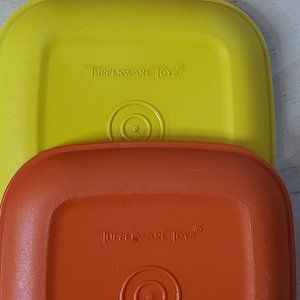 Vintage Tupperware Toys 2 Plates 2 Bowls 4 Pieces Orange Brown Yellow Plastic