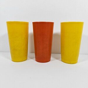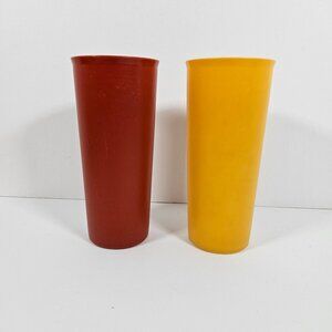 Retro Tupperware tumblers in vibrant yellow and orange. Classic harvest colors for your Tupperware collection.