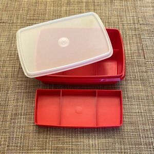 Vintage Tupperware Tuppercraft Red Divided Stow N Go Tackle Craft Sewing Box Lid