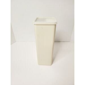 This is a vintage Tupperware Velveeta Cheese Keeper, model #1696, in a classic sheer/almond color. This container is designed with a removable tray, perfect for keeping block cheese, like Velveeta, or crackers fresh. The base is marked with the number #1696, and the included tray is an original part of this set. It is in good pre-owned condition with some signs of use consistent with its age. The lid forms a tight seal, which is a hallmark of Tupperware's quality and ensures your food stays fresh. This is a great piece for any vintage Tupperware collector or for someone looking for a fun and functional piece for their kitchen.