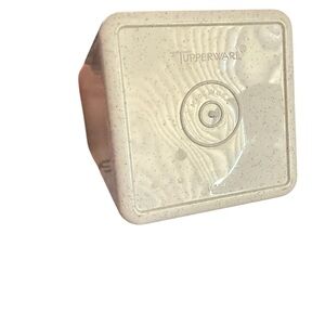 Add a retro charm to your kitchen with this classic vintage Tupperware Velveeta Cheese Keeper, model #1696. Designed in the 1960s, this rectangular white speckled container with a blue lid was made to hold a full block of Velveeta cheese, but also works great for crackers, snacks, or organizing pantry items. Comes with the original removable insert tray.