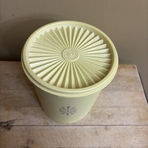 Vintage Tupperware Yellow Servalier Canister 809-5 811-3 with lids set of 2