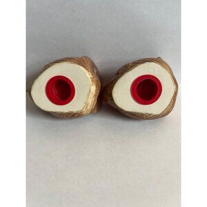 Minor paint wear on one shaker, no cracks or chips detected. Each shaker measures approximately 3 inches tall.