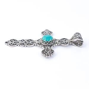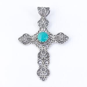 Vintage Turkey Sterling Silver 925 Filigree Turquoise Cross Pendant