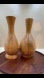Gorgeous shape of these two wood-turned items. They are slightly different in shape and size. The taller one can fit most taper candlesticks and the shorter vessel is best suited for dried flowers a taper is too thin for the hole of this vase.