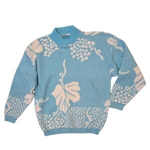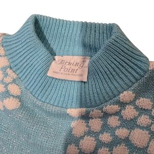 Vintage Turning Point Sweater Light Blue w Silver Metallic