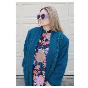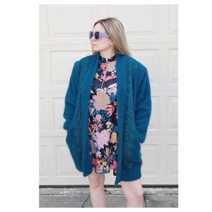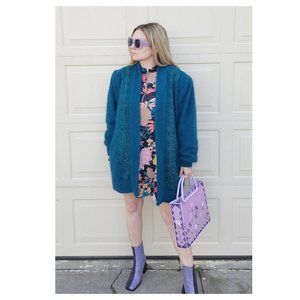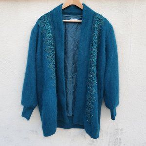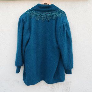 DESCRIP: Turquoise Angora Oversized Cardigan w/