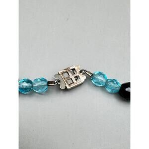 Vintage Turquoise & Black Glass Bead Necklace w/Sterling Silver Clasp