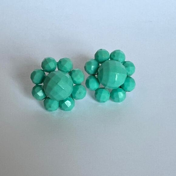 Vintage Turquoise Blue Earrings, Orbit Screw Back Round Flowers