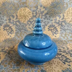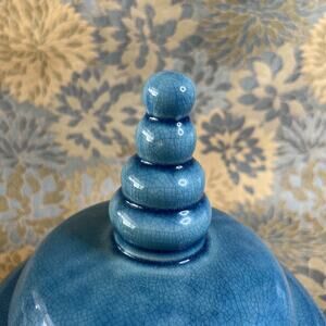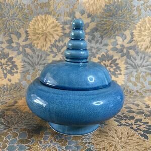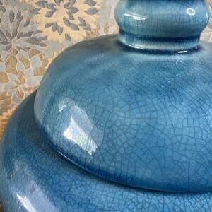 Vintage Turquoise Blue Mediterranean Ceramic Spice Jar 9″ x 8″ with Lid