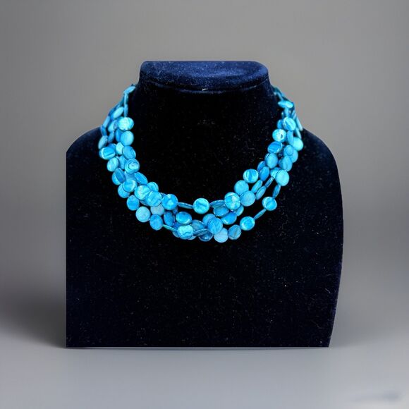 Vintage Turquoise Blue Mother of Pearl Shell Multi Strand Necklace
