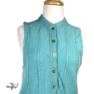* Special Feature: Turquoise Button Up V Neck Vest - nubby weave, sleeveless