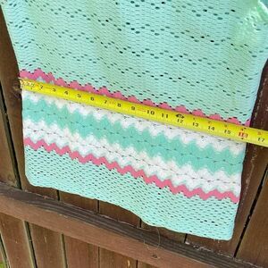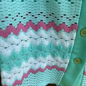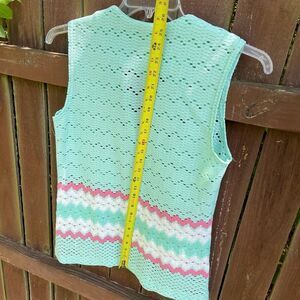 Vintage homespun cottage core 70’s Turquoise button down vest top with vertical zigzag white and pink stripes. Handmade item. Unique piece! Great WandaVision Agatha piece! *See matching pieces! (2)