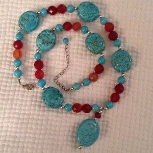 Carved Turquoise beads with faceted carnelian and round turquoise beads. 22 inches.
