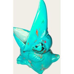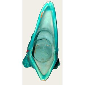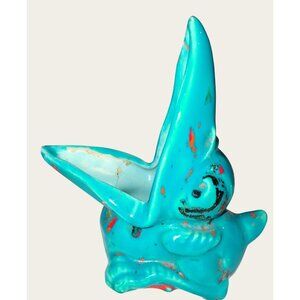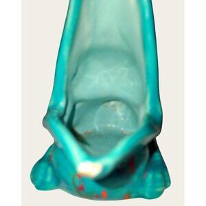 Vintage Turquoise Ceramic Bird Planter Orange Black Splatter
