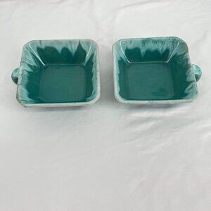 Vintage Turquoise Ceramic Dinnerware Set 6 Pieces Square Plates & Mugs