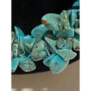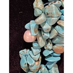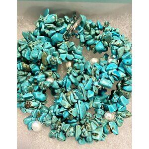 Vintage Turquoise Chip & Freshwater Pearl 11” Multi-Strand Necklace Strung Cord