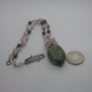 EUC, vintage piece, not stamped but slight tarnish like sterling, 7" drop on necklace or 9" drop with pendant