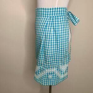 Vintage Turquoise Gingham Half Apron Hand Embroidered OSFM