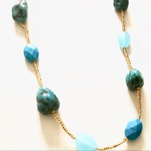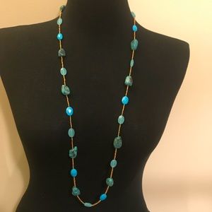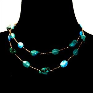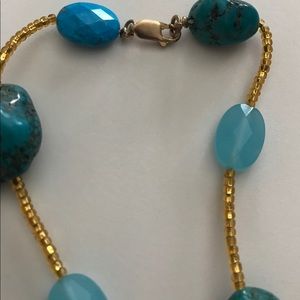 Just the right amount of bling on the gold glass beads between the stones. Can be worn single, double or as a bracelet. Circa 1970.