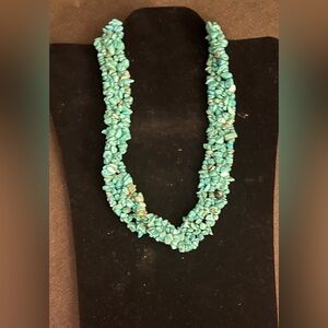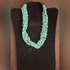 This stunning vintage turquoise necklace features a beautiful cluster of turquoise stones. It is in excellent pre-loved condition, making it a timeless and elegant piece for any occasion.