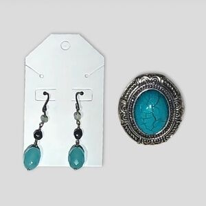 Vintage Turquoise Pendant Necklace Earrings Ring Jewelry Set
