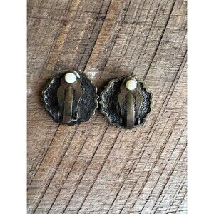 Vintage Turquoise & Red Flower Clip-On Earrings Boho Southwestern Style