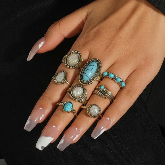 Vintage Turquoise Ring Set 8 Pieces Color: Bronze/Gold Turquoise Alloy Ships same day or next! ❤️