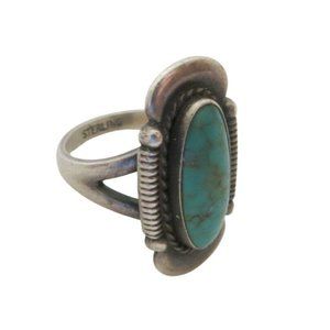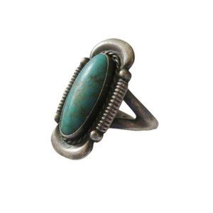 Vintage Turquoise Ring Sterling Silver Southwest Oval Cabochon Size 5.5 JHE5
