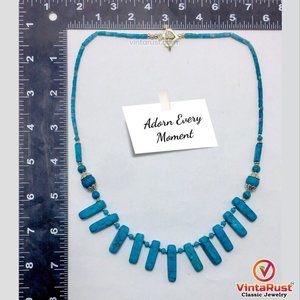 This super chic tribal necklace featuring semi-precious turquoise stones is one of the stunning pieces from our jewelry collection. This semi-precious stone necklace adds a nice touch of color with being classy, whenever you wear it. Elegant semi-precious turquoise stones are placed in this necklace.