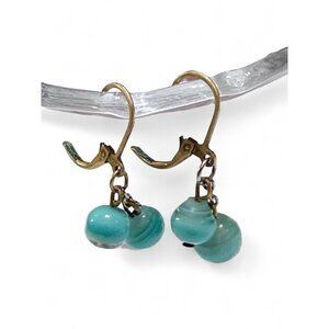 Vintage Turquoise Swirl Glass Bead Dangle Earrings
