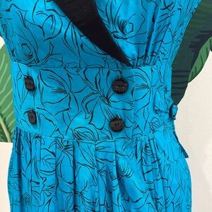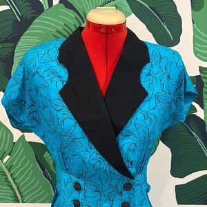 Vintage Turquoise and Black Double-Breasted Rockabilly Dress