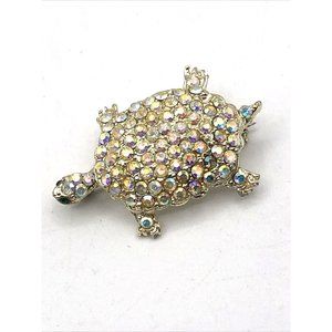 Vintage Unsigned Turtle AB Aurora Borealis Glass Rhinestone Brooch Pin Goldtone Figural Animal