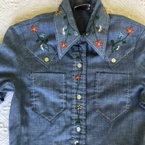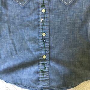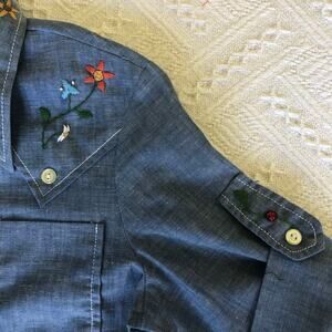 ๐ Sweet western-style chambray with floral embroidery on collar, placket, sleeve tab, and back