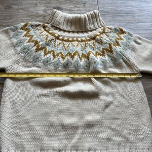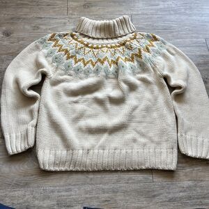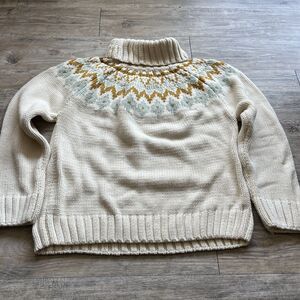 Vintage Turtleneck Knit Sweater — women’s size XL in cozy cream. Features a soft knit texture with subtle Nordic-inspired detailing, perfect for chilly fall and winter days. A timeless vintage piece that pairs beautifully with jeans or layered outfits.