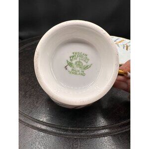 Elevate your tea time with this elegant teacup and saucer set from Tuscan. The vintage design features gold and black feather patterns, adding a touch of sophistication to your collection. Crafted from fine bone china, it's a timeless addition for tea lovers and collectors.