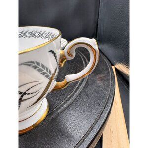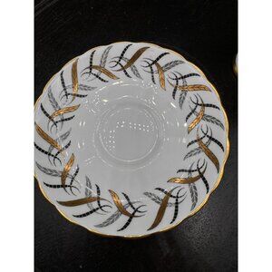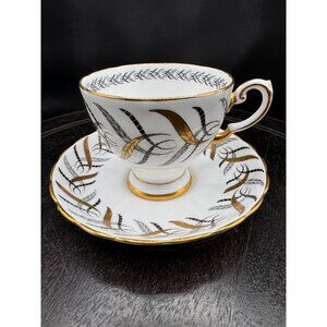 Vintage Tuscan England Bone China Teacup & Saucer Set With Gold & Black Feather